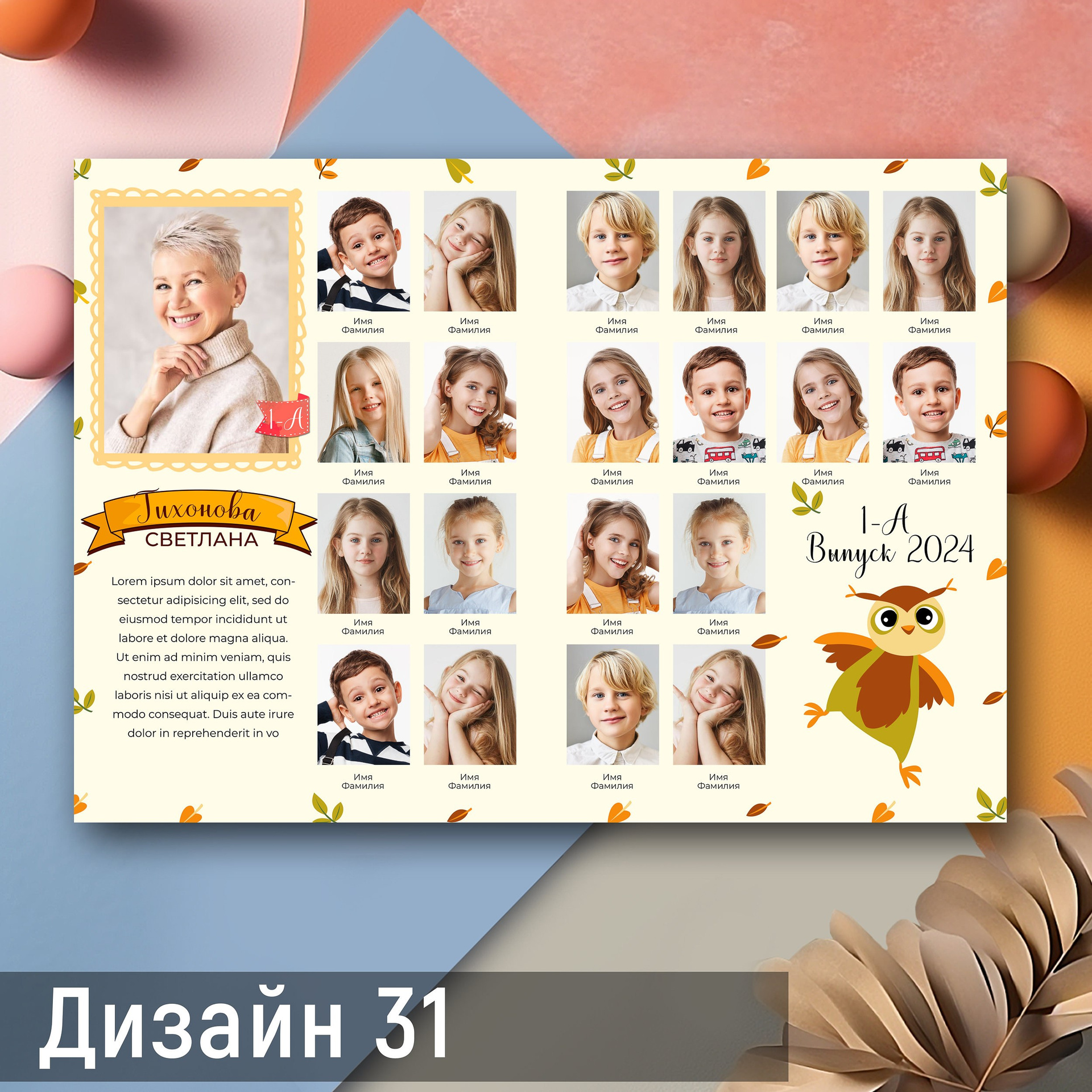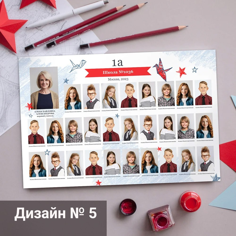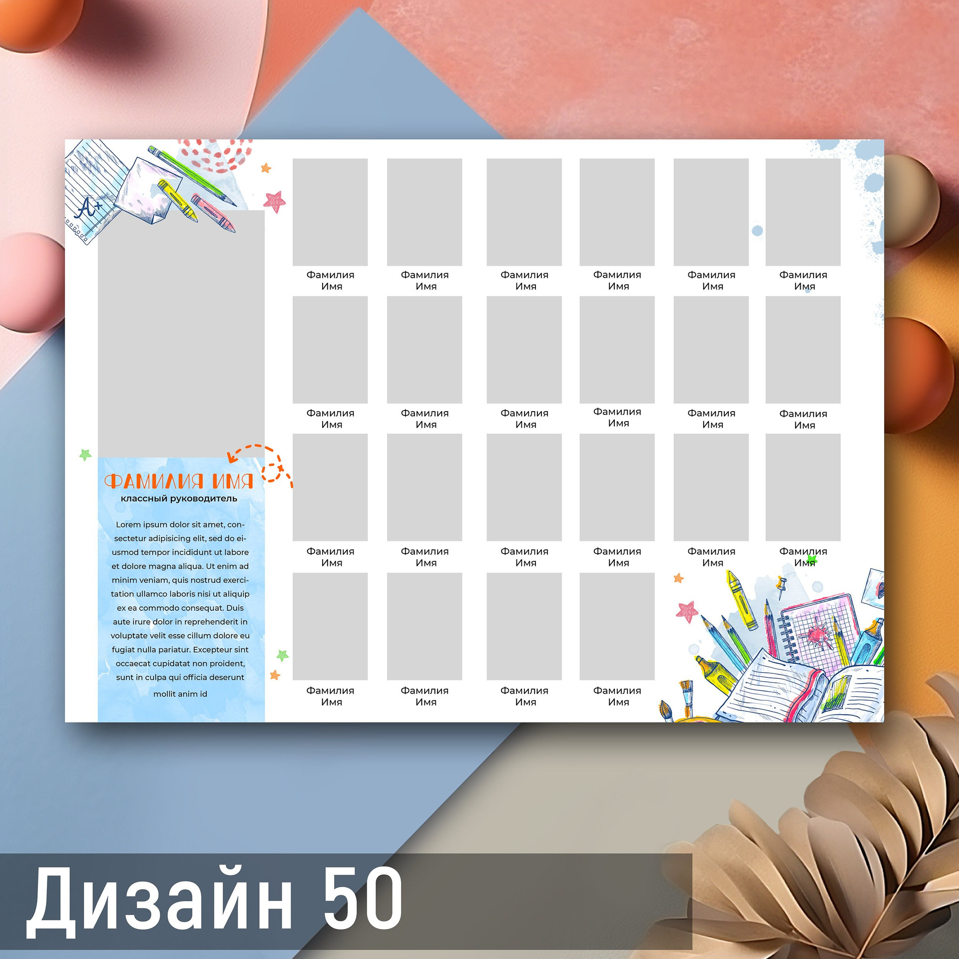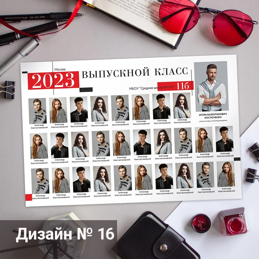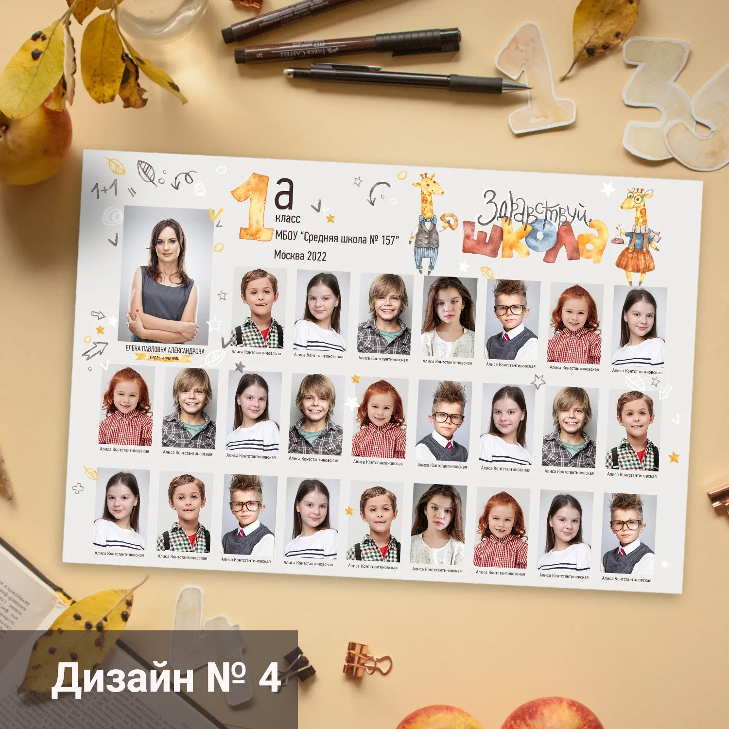 - ✔️ Фон портретов, вид и расположение портретов на виньетке может отличаться от представленных, в зависимости от количества учеников и метода съемки (фото стоя либо за партой).