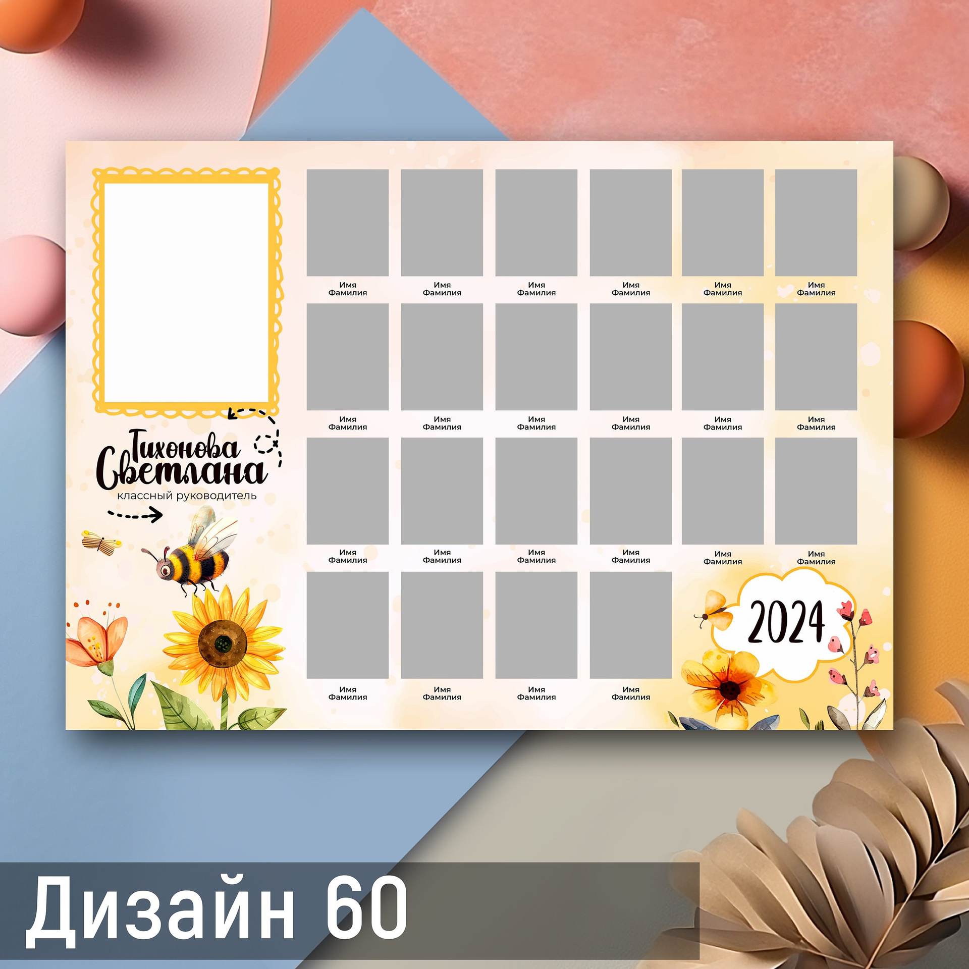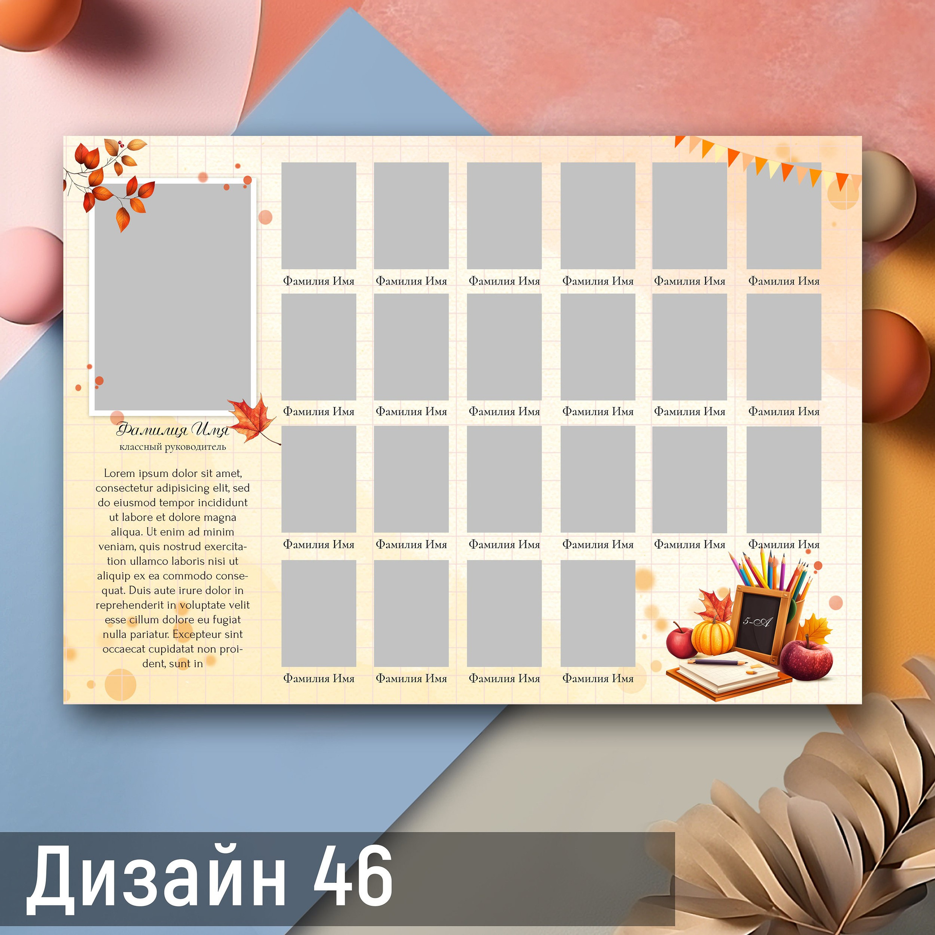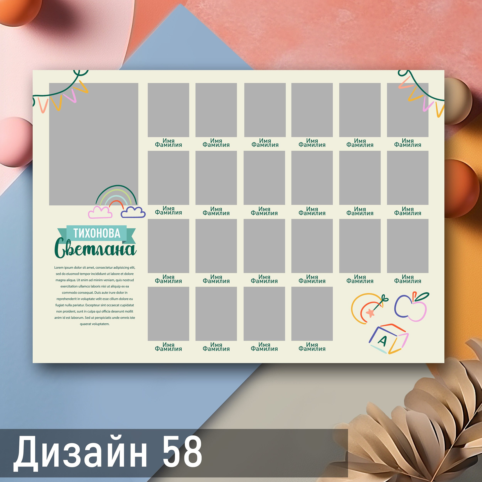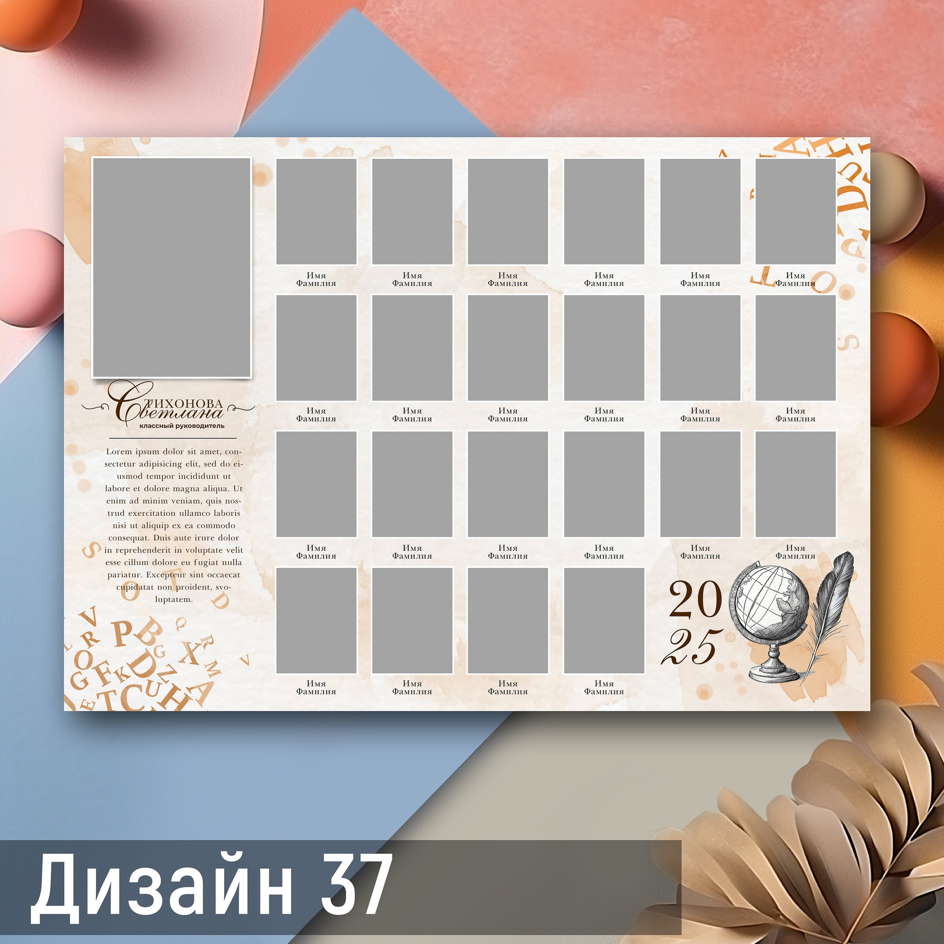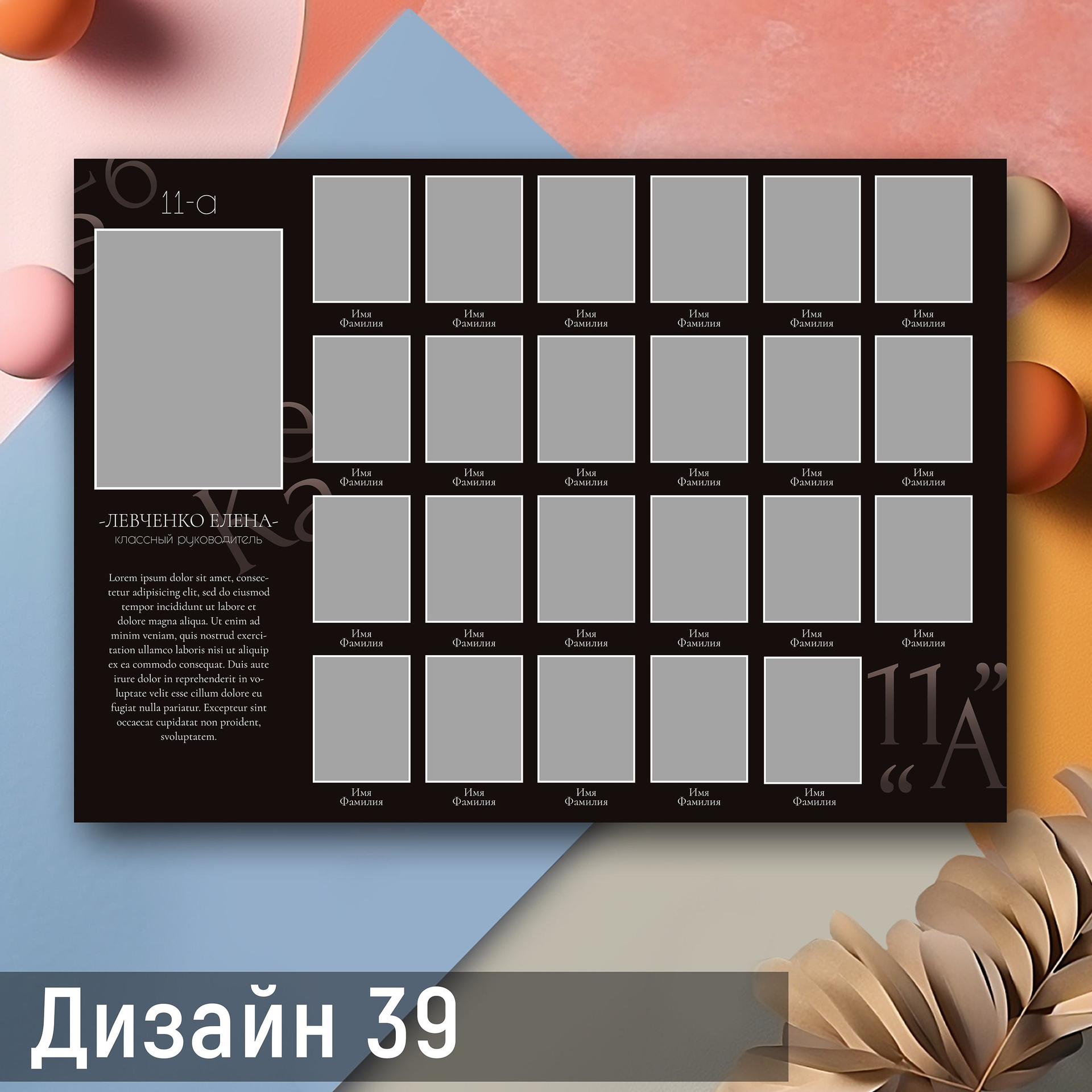 - ✔️ Фон портретов, вид и расположение портретов на виньетке может отличаться от представленных, в зависимости от количества учеников и метода съемки (фото стоя либо за партой).