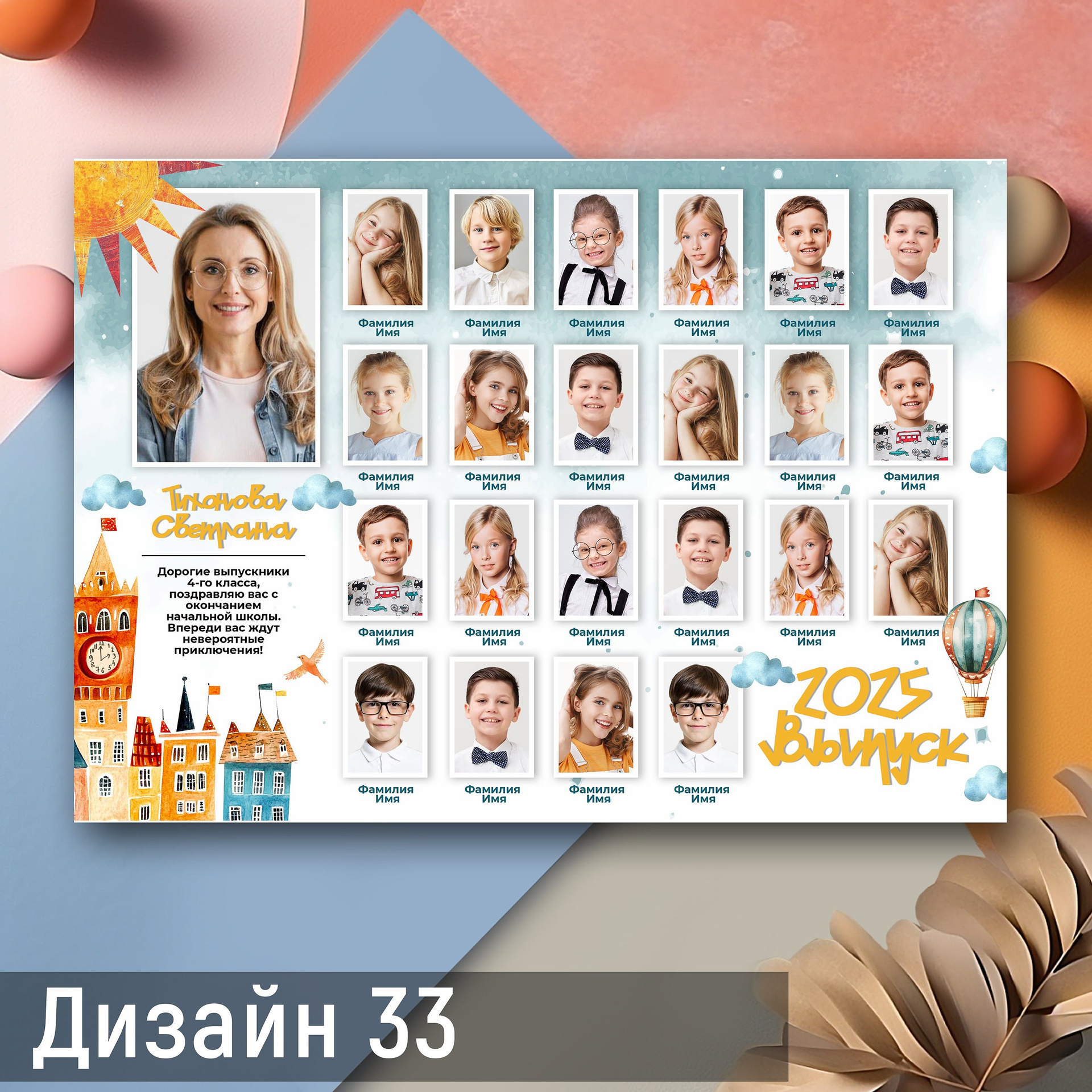 🌞 Данный лаконичный вариант подходит для любого класса и не только выпускного, когда не хочется платить за большой альбом, но есть желание сделать красивые портреты детям и распечатать виньетку класса.